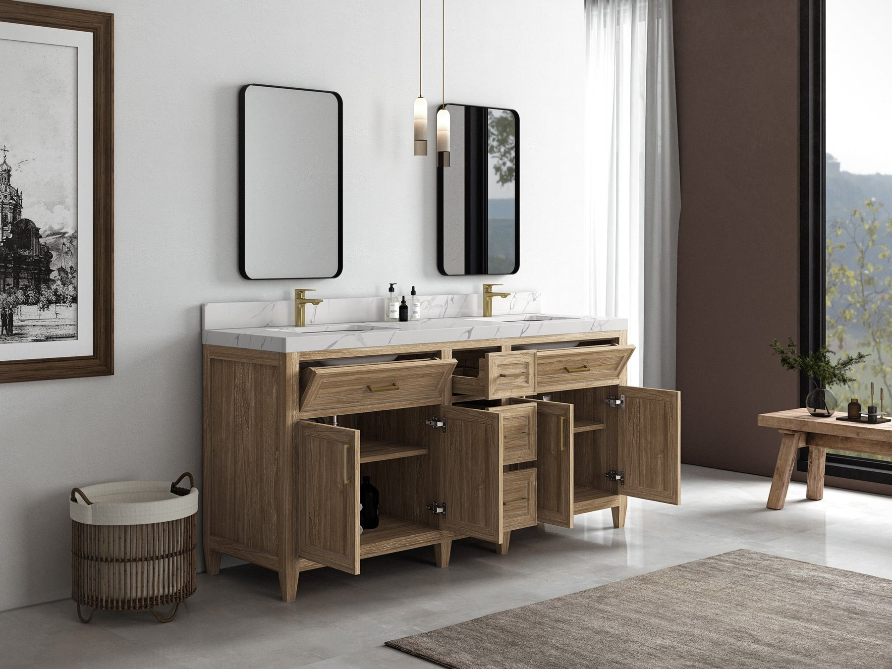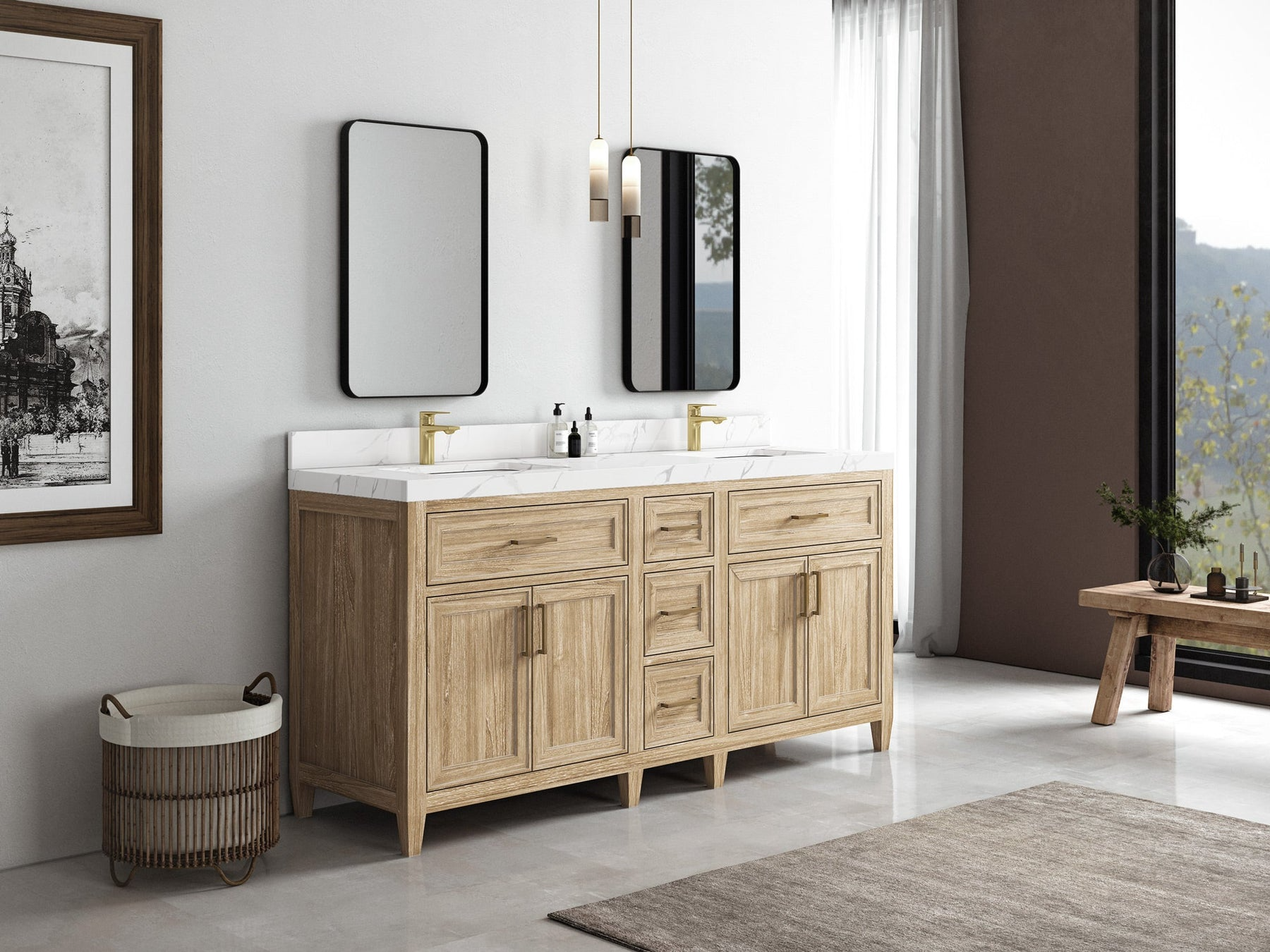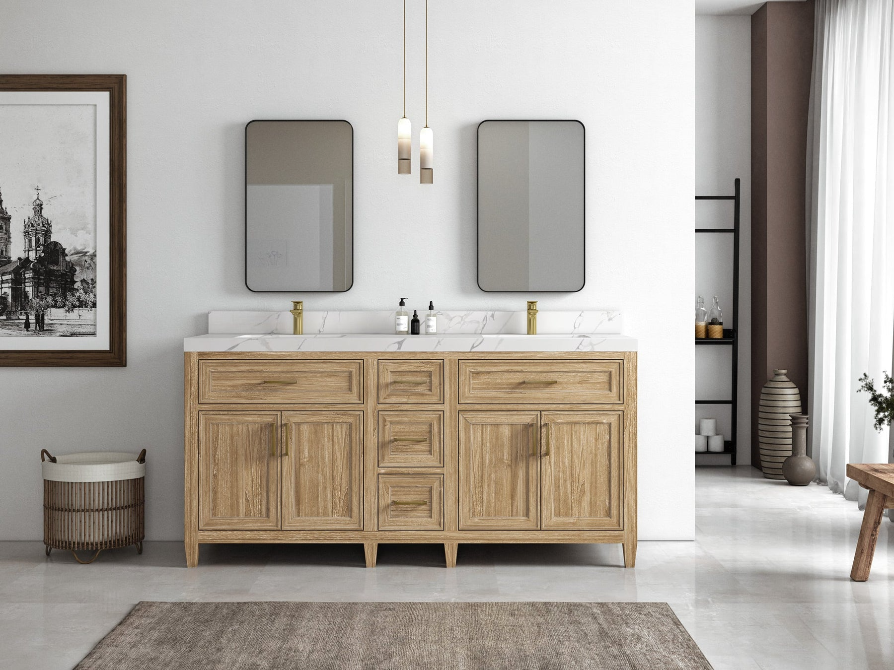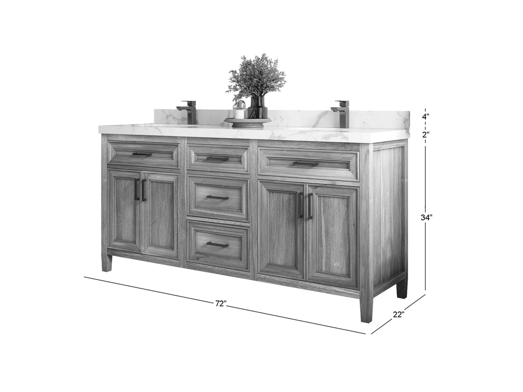Santa Monica 72″ Double Sink Vanity, Whitewashed Teak