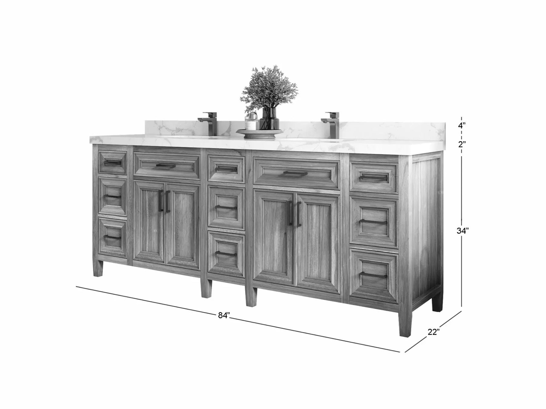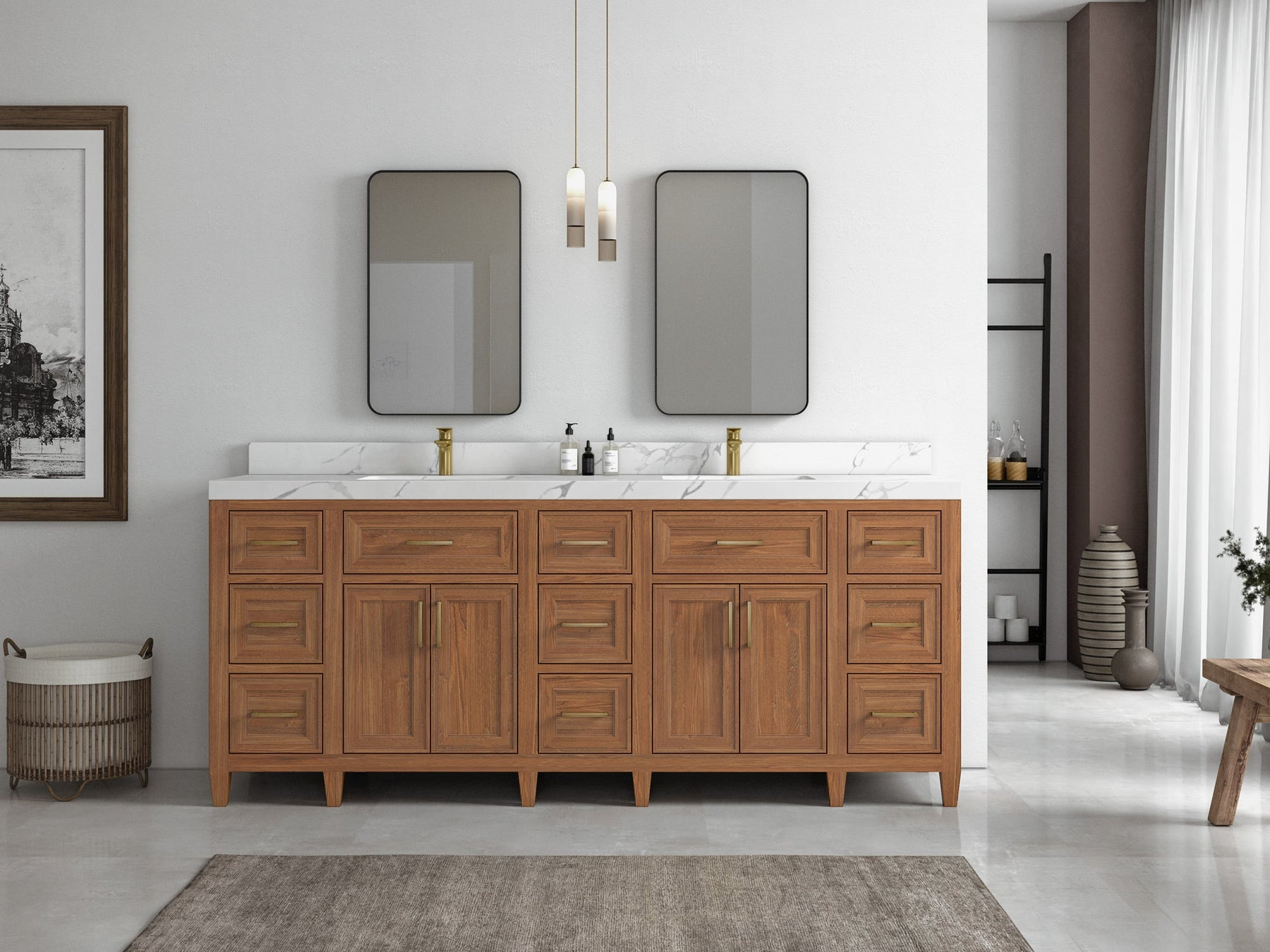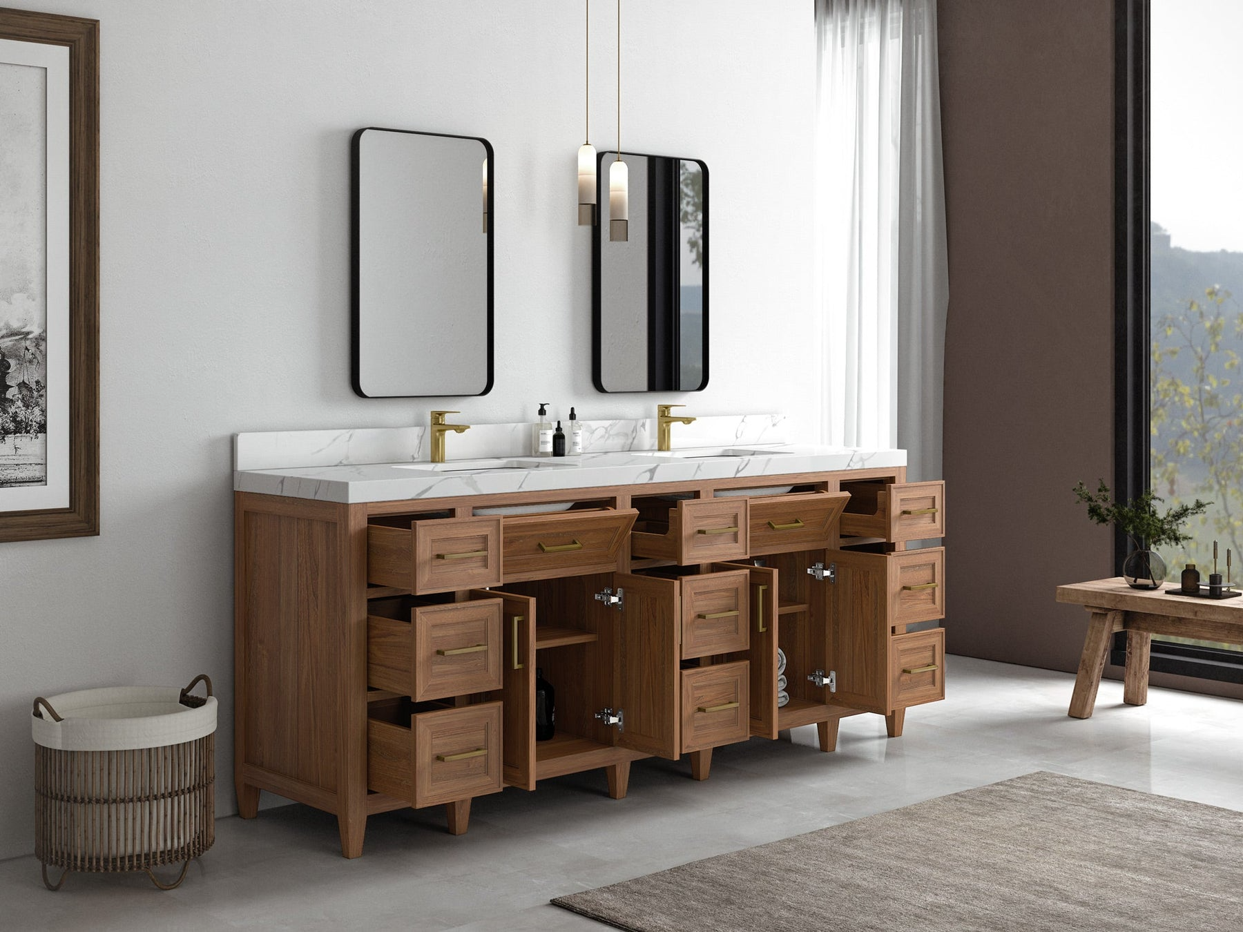 Santa Monica 84″ Double Sink Vanity, Dark Natural Teak