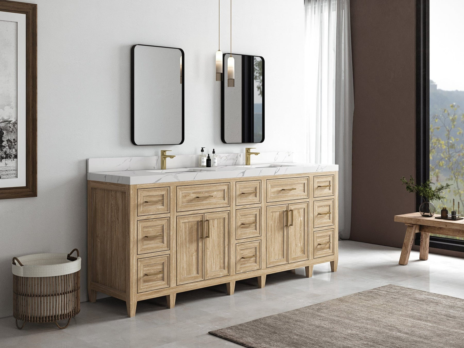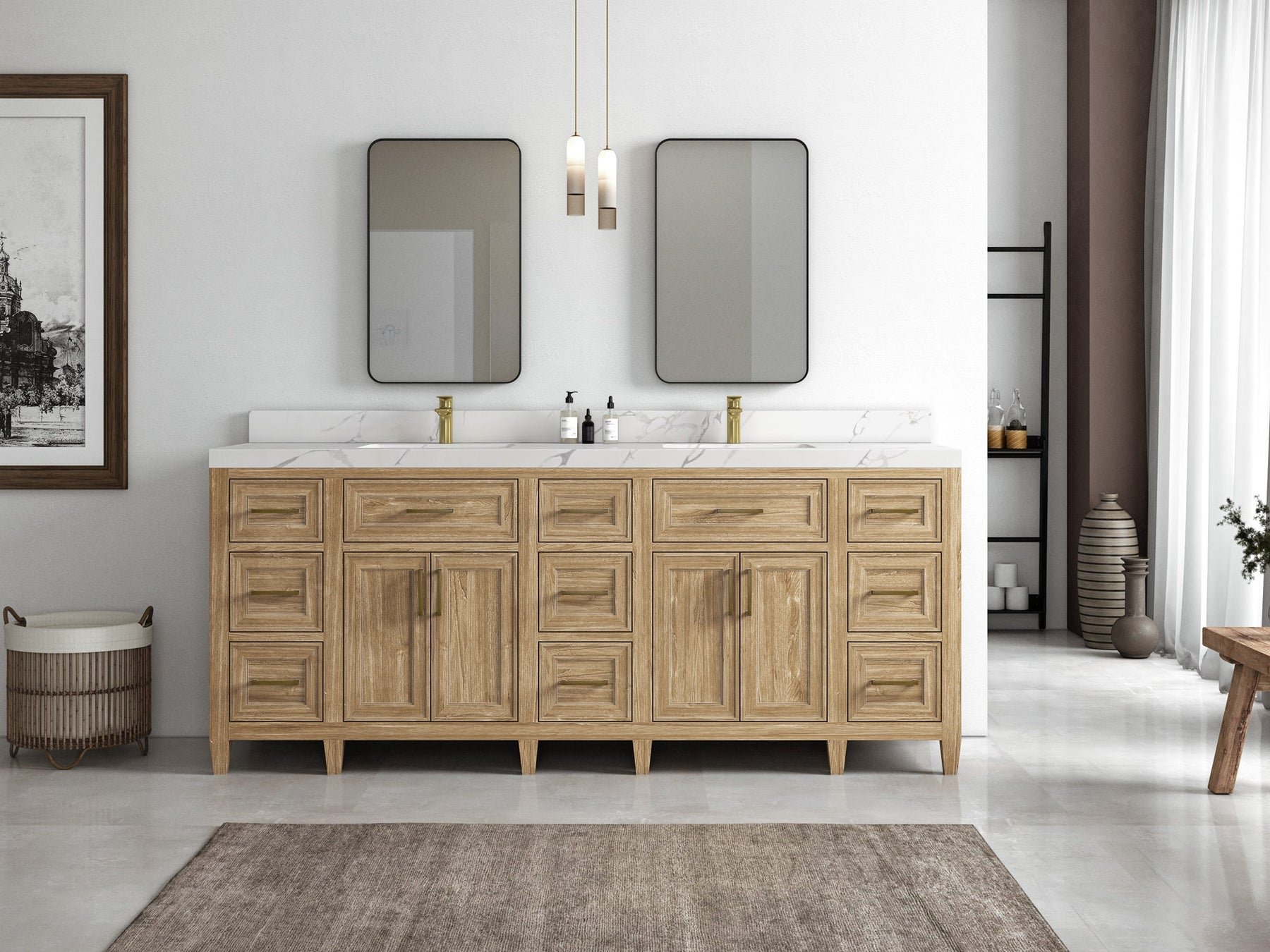 Santa Monica 84″ Double Sink Vanity, Whitewashed Teak
